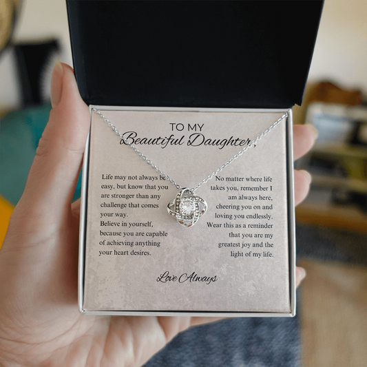 To My Beautiful Daughter - Always Be Brave And Be Strong - Love Knot Necklace