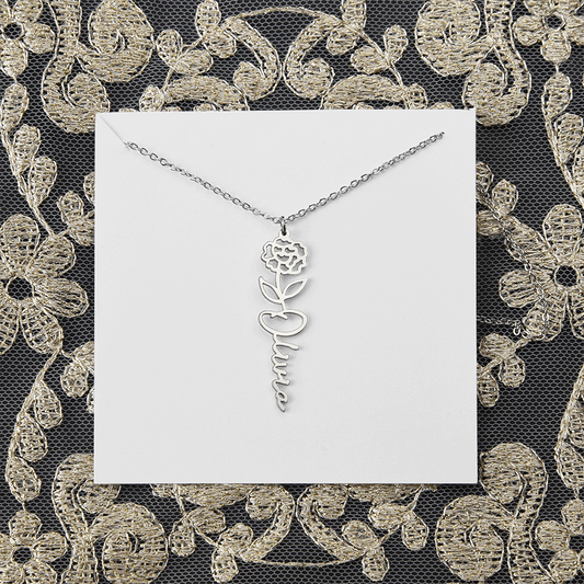 Birth Flower Name Necklace - Personalized Gold Name Necklace - Custom Floral Birthday Gift